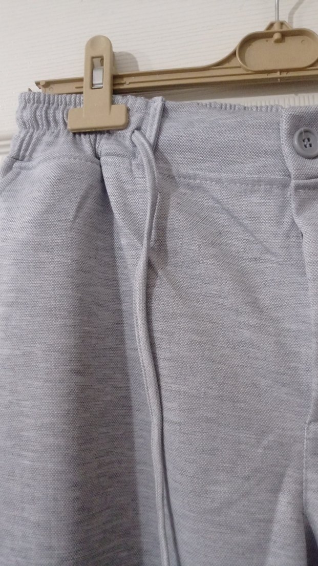 Düğmeli Gri erkek pantolon.