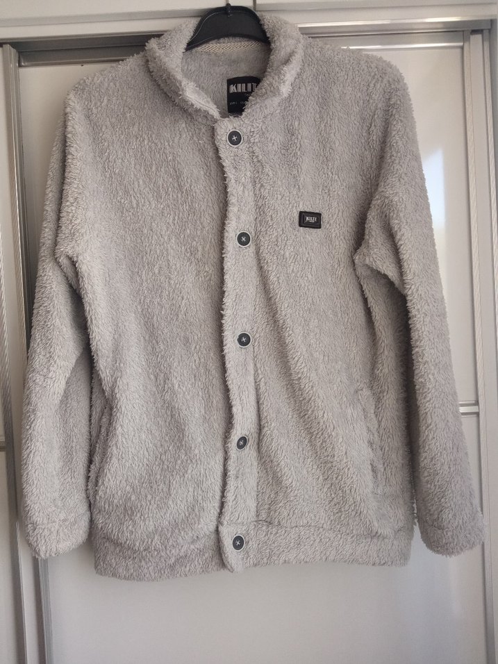 Bu erkek poları düğmeli ön ve yakasında kesik yaka bulunur. Gri renkte, yumuşak ve rahat kumaştan, bol kesim ve uzun kolludur. Günlük sokak tarzına uygun midi boyda.