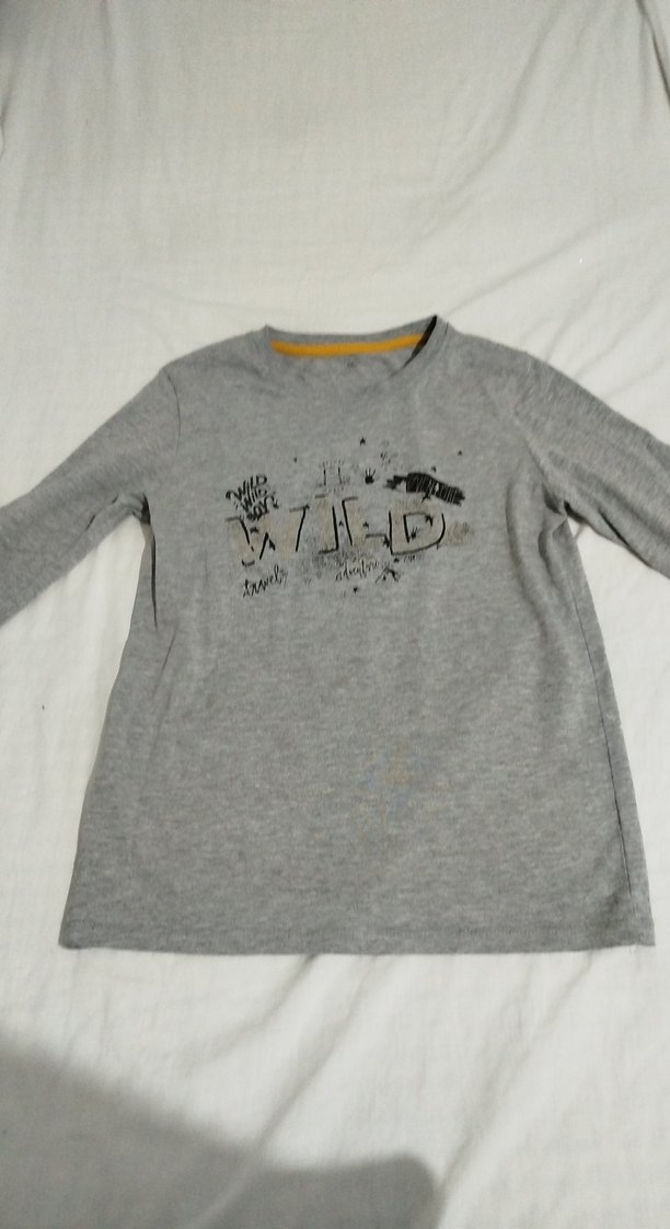 Uzun kollu, yuvarlak yaka, bol kesim gri erkek sweatshirt. Önünde baskı ve düğme detayları bulunur. Rahat sokak stili için uygun.
