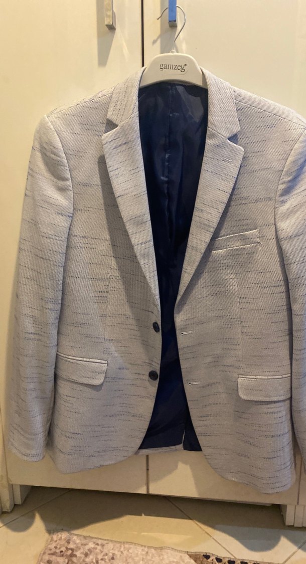 Düğmeli, gri renkli erkek takım ceketi, notched yaka ve uzun kolludur. Ofis ve sokak stiline uygun, normal uzunlukta ve regular fit modeldir.