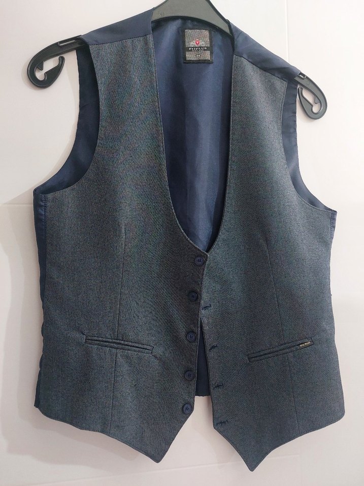 Düğmeli, gri renkte, yakası kesik ve kolsuz erkek yelek. Sentetik kumaştan, normal boy ve regular fit kesime sahip. takım elbise ve günlük stil için uygun. arkadan kemerli ayarlanmalı s,m,l giyene uygun