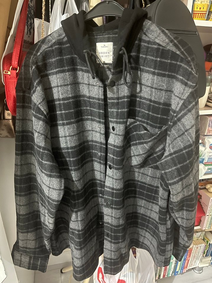 Gri yün gömlek, uzun kollu ve düğmeli ön kısmıyla rahat ve salaş bir kesime sahip. Midi boy ve yakalı tasarımıyla sokak stiline uygun.