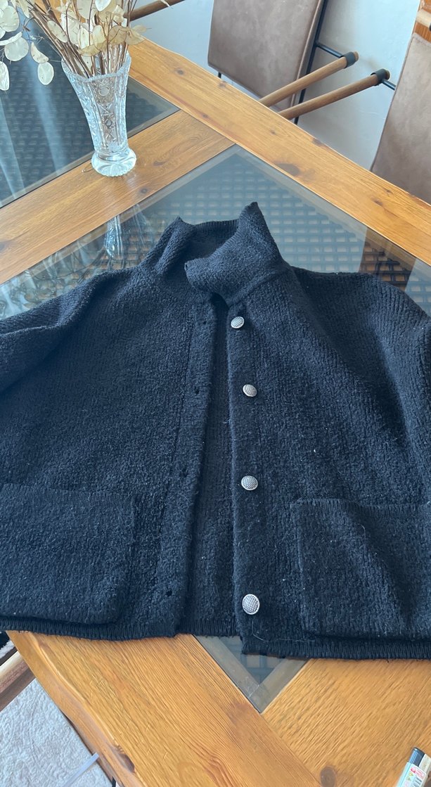 Düğmeli, yün malzemeden yapılmış, gri renkte, uzun kollu ve normal boyda erkek hırkasıdır. Rahat kalıplı ve düz desensizdir.
