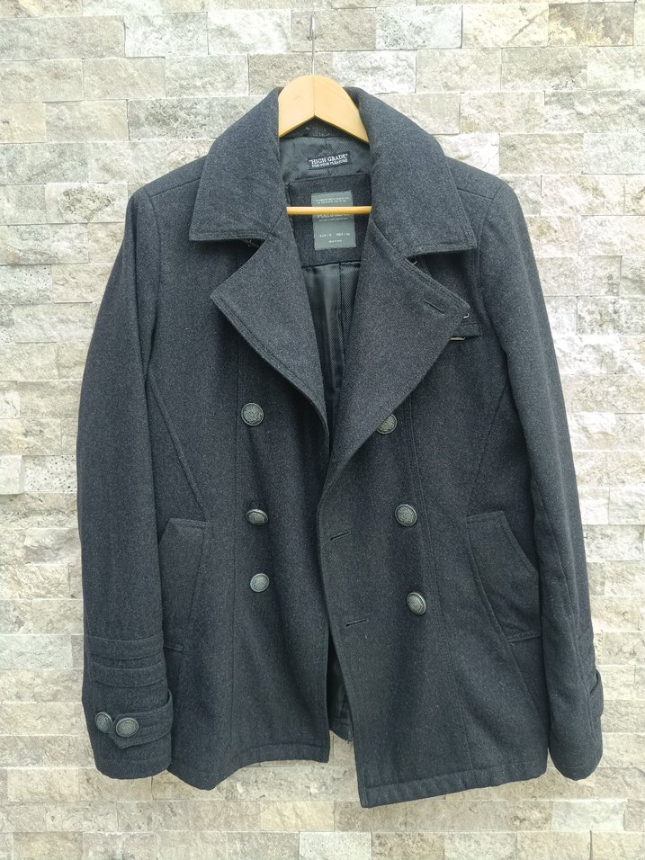 Düğmeli Gri Erkek Yün Kaban