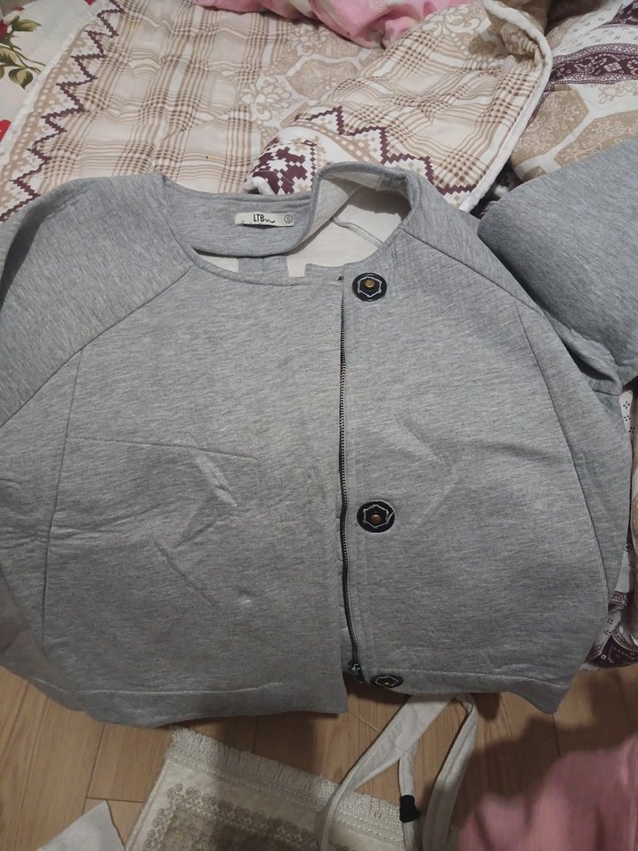 Gri renkte, düğmeli, rahat kesim hamile ceketi. Uzun kollu, yuvarlak yakalı ve midi boyda, yumuşak keten kumaştan üretilmiştir. Günlük kullanıma uygun, rahat bir tarz sunar.