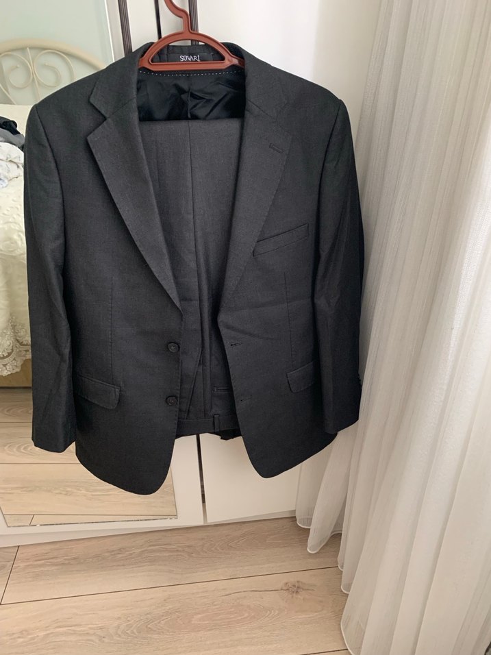 Gri renkte, keten kumaştan yapılmış, düğmeli ve kesimli yakalı hamile ceketi. Normal kesim, uzun kollu ve midi boyda, ofis kullanımı için uygun.