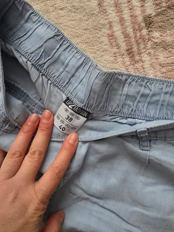 Düğmeli ve lastikli bel bantlı, bol kesim gri denim hamile midi şort. Günlük kullanıma uygun rahat ve sade tarzda.