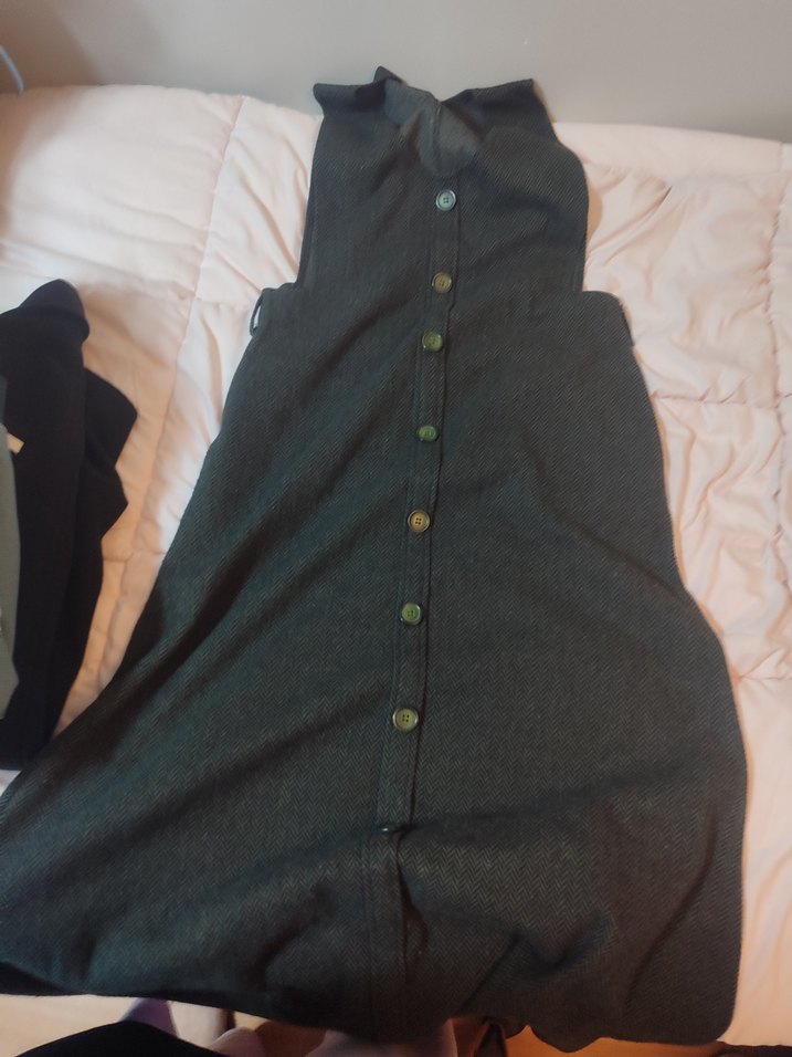 Düğmeli, uzun ve vücuda oturan gri hamile tulumu, yakalı ve kolsuz tasarıma sahiptir. Yumuşak keten kumaştan üretilmiş, rahat ve günlük kullanıma uygundur.