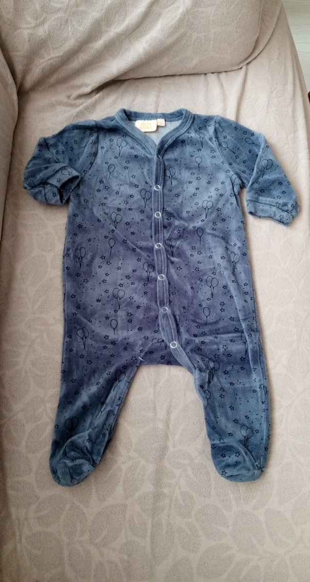 Gri renkli, uzun kollu, düğmeli ön kısmı ve hafif balon desenli yumuşak ve sıcak kumaştan yapılmış bebek tulumu. Notch yaka ve sokak stili tasarımına sahiptir.