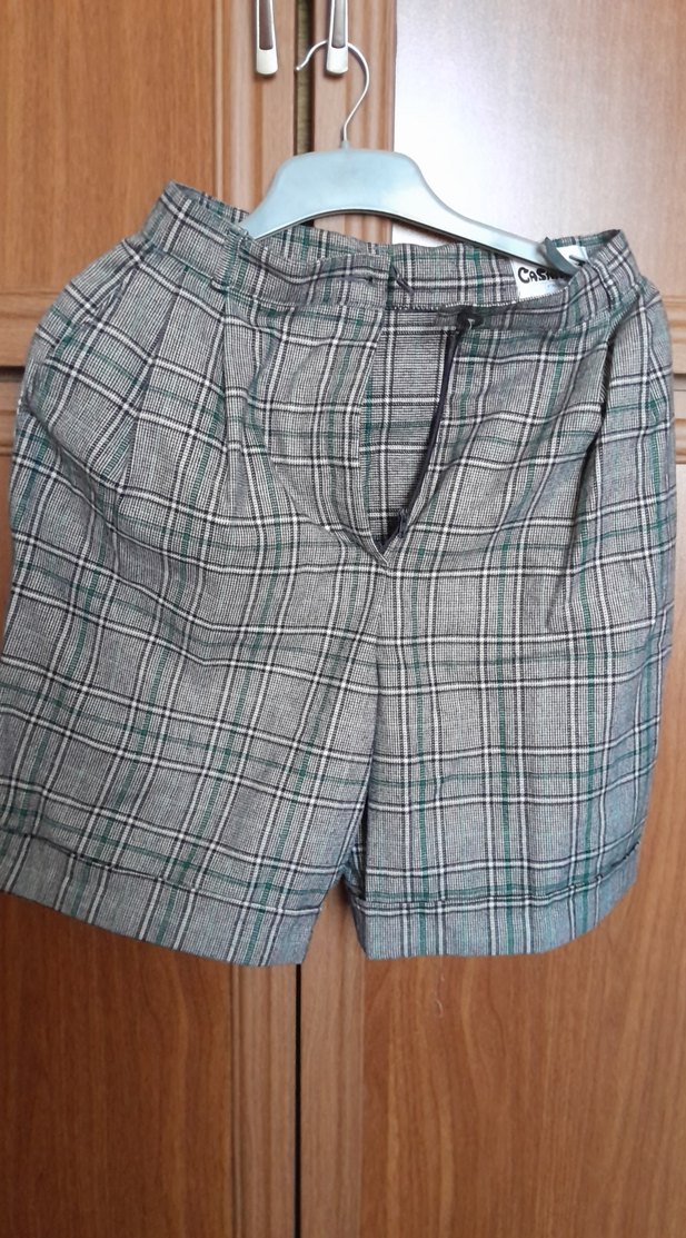 Düğmeli ön kısmı ve regular kesimi olan, gri renkli kadın bermuda şort. Günlük sokak tarzı için uygundur. fermuari bozuk