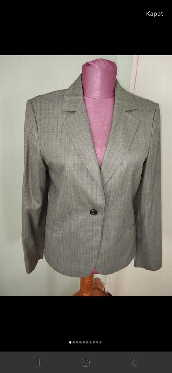 Gri renkli, düğmeli, klasik ve çağdaş tarzda kadın blazer ceket. Uzun kollu ve normal boydadır, ofis kullanımı için uygundur, 38 beden fabrika marka, ölçüler son fotoda yazıyor astarlı ürün hiç kullanılmadı
