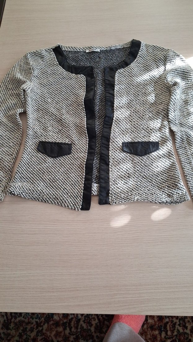 Düğmeli, kruvaze yakalı, uzun kollu ve regular fit gri kadın ceket. Siyah detaylı, kısa kesim ve iki ön cepli, günlük kullanıma uygun.