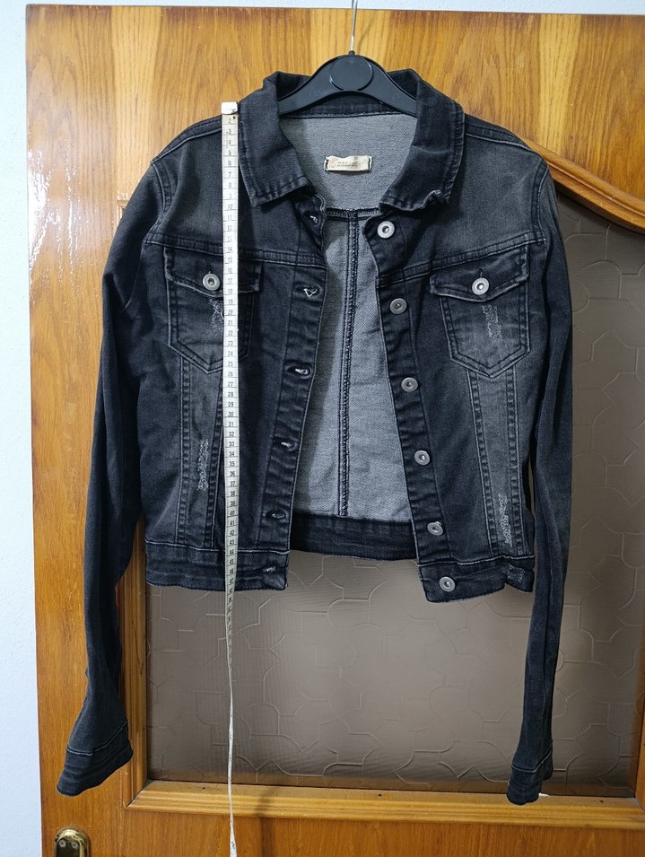 Düğmeli Gri Kadın Denim Ceket