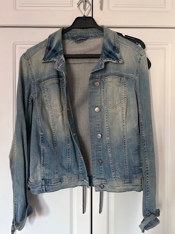 Düğmeli Gri Kadın Denim Ceket
