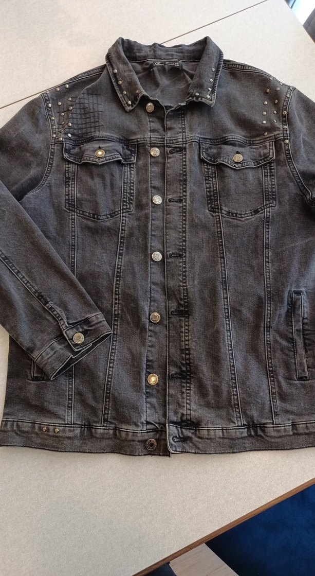 Düğmeli, uzun kollu, gri renkli, bol kesim kadın denim ceket. Yaka ve omuzlarda metal detaylar bulunur, sokak stiline uygundur. ( Ürün kalitesi çok iyi . taşlama efektleri ile renk soldurma yapilmistir . ) arkada dikiş detayları ile görselde her detay belirtilmiştir .