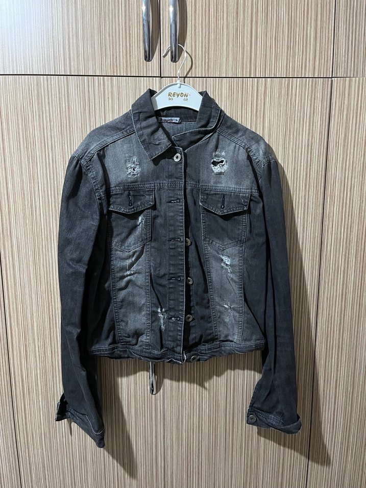 Düğmeli Gri Kadın Denim Ceket