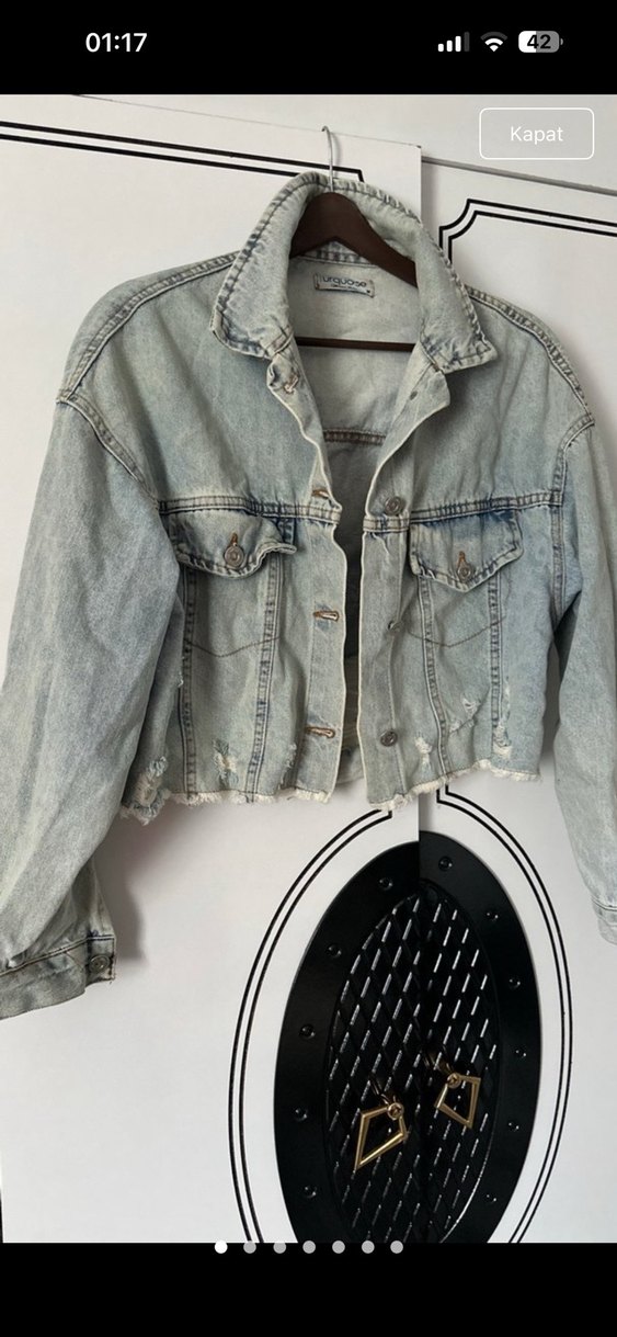Düğmeli Gri Kadın Denim Ceket