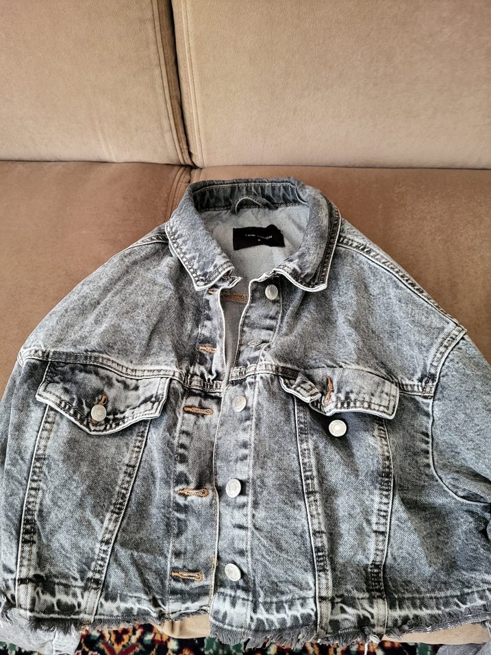 Gri renkli, düğmeli ve notched yakalı bu kadın denim ceketi, bol kesim ve midi boydadır. Sokak modasına uygun, günlük rahat kullanıma uygundur.