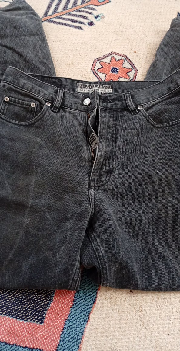 Düğmeli, bol kesim gri denimden yapılmış midi boy kadın pantolon. Günlük kullanıma uygun rahat bir modeldir.