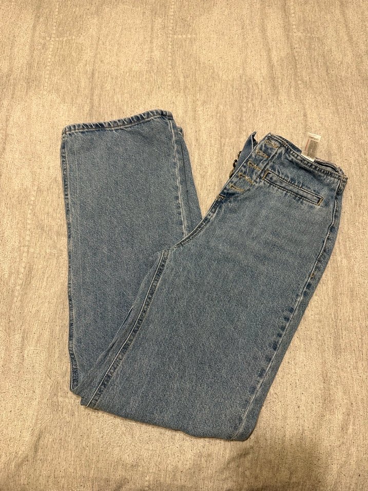 Düğmeli, bol kesim gri kadın denim pantolon. Normal uzunlukta, desensiz, günlük kullanım için uygun rahat ve trend bir model.