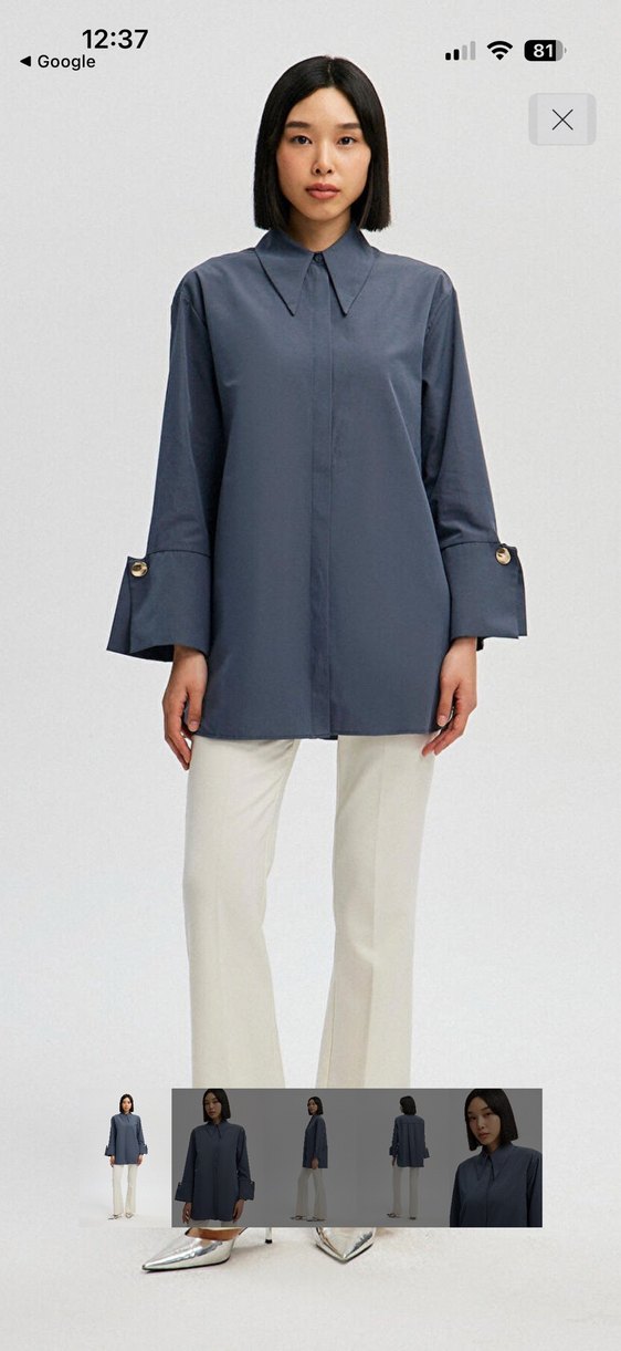 SATILDI!! Touche prive Düğmeli Gri Kadın Gömlek