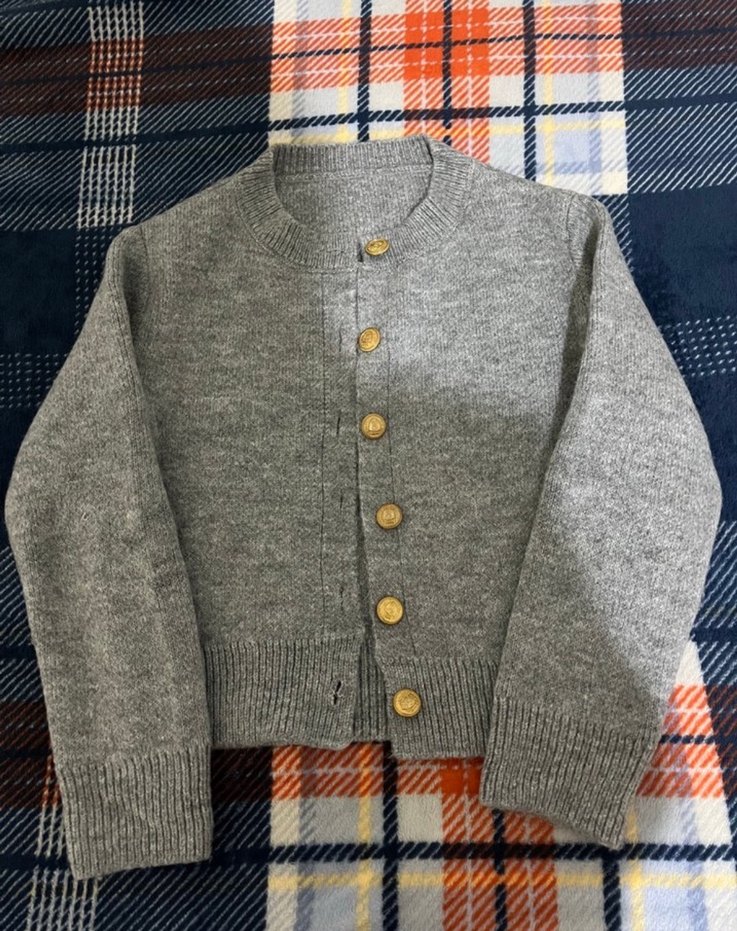 Düğmeli, uzun kollu, gri triko hırka, normal kesim ve midi boyda, günlük kullanıma uygun rahat bir parçadır. Xs beden markası yok. Ölçüleri fotoğrafta verildi