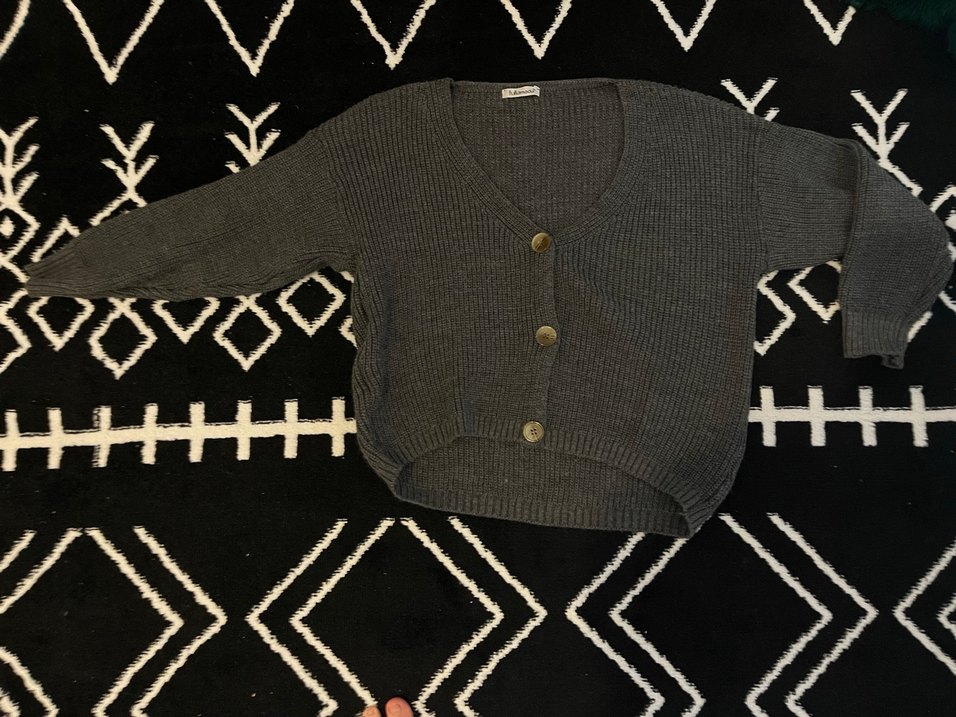 Düğmeli Gri Kadın Hırka
