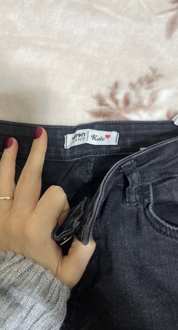 Düğmeli Gri Kadın Jean