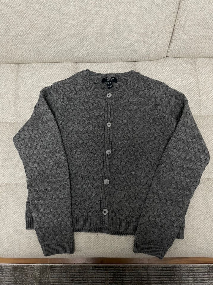 Düğmeli gri kadın kazak
