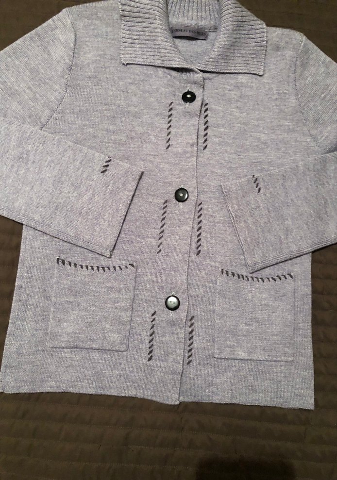 Düğmeli ve yakalı gri kadın hırka, örme kumaştan, uzun kollu ve normal midi uzunlukta. Cep detaylı, rahat kesim, gündelik kullanıma uygun. Omuz 44cm,koltuk aradı 48 cm,boy60cm