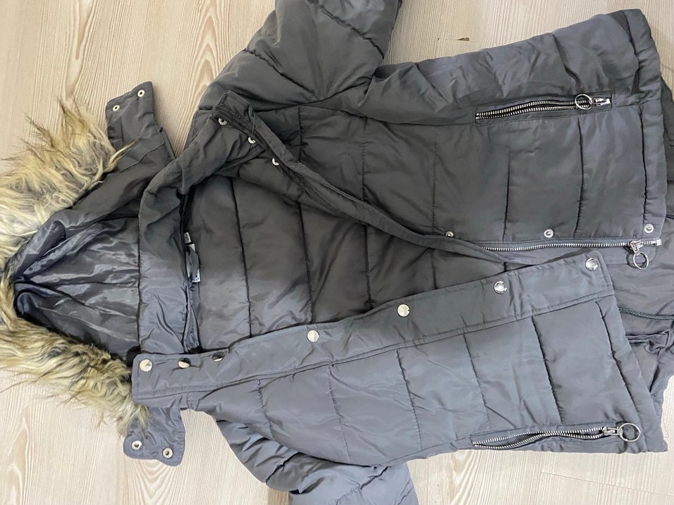 Düğmeli Gri Kadın Kışlık Mont