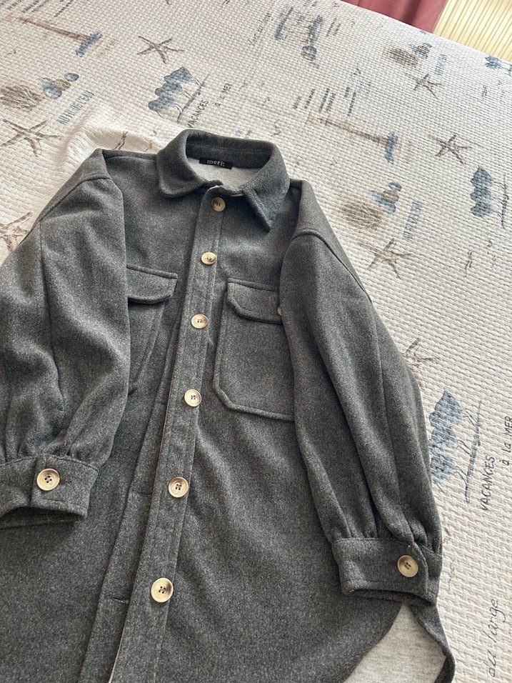 Gri renkte, düğmeli ve cepli kadın midi ceketi. Uzun kollu, bol kesim ve rahat keten kumaştan üretilmiştir. Notlu yakası vardır.