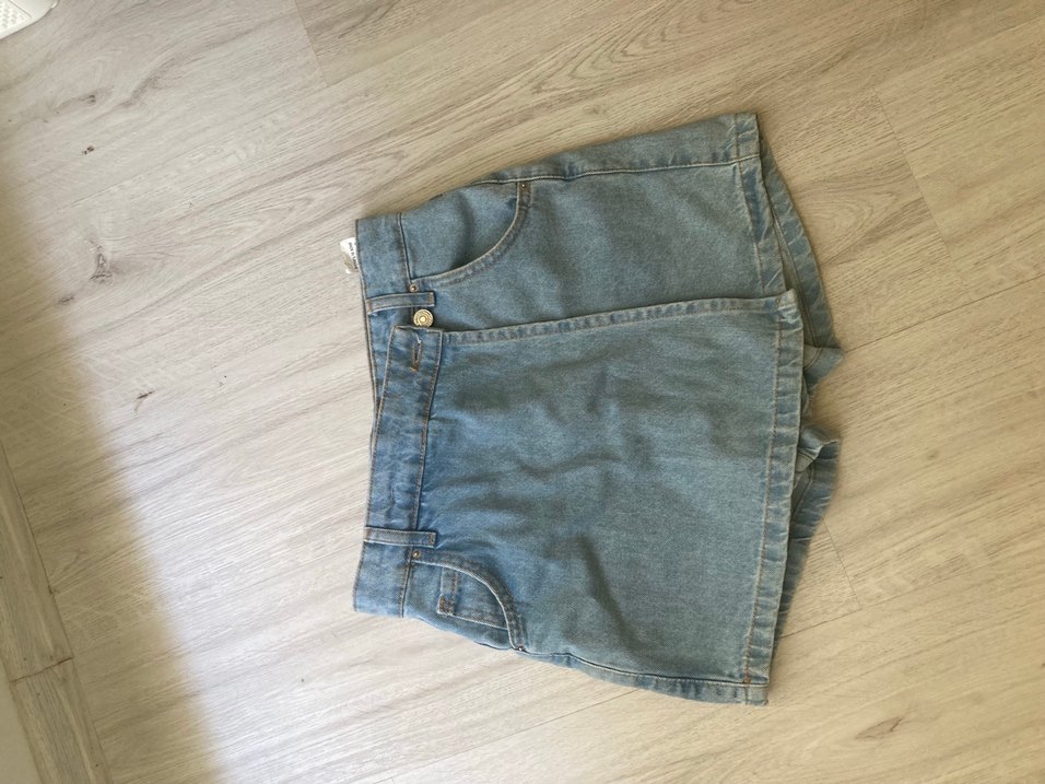 Düğmeli, kadın denim midi şort. Sade ve deseniz, günlük rahat sokak stili için uygundur.