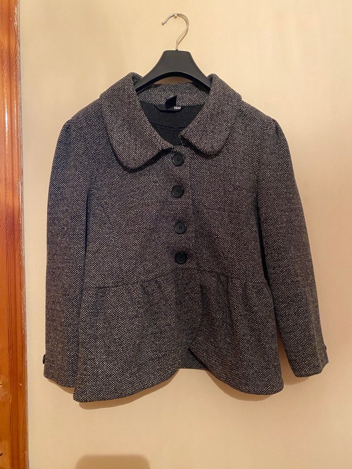 Gri yün ceket, düğmeli ön ve notalı yaka detayına sahiptir. Uzun kollu, midi boy ve regular fit kesimiyle ofis ve günlük kullanıma uygundur.