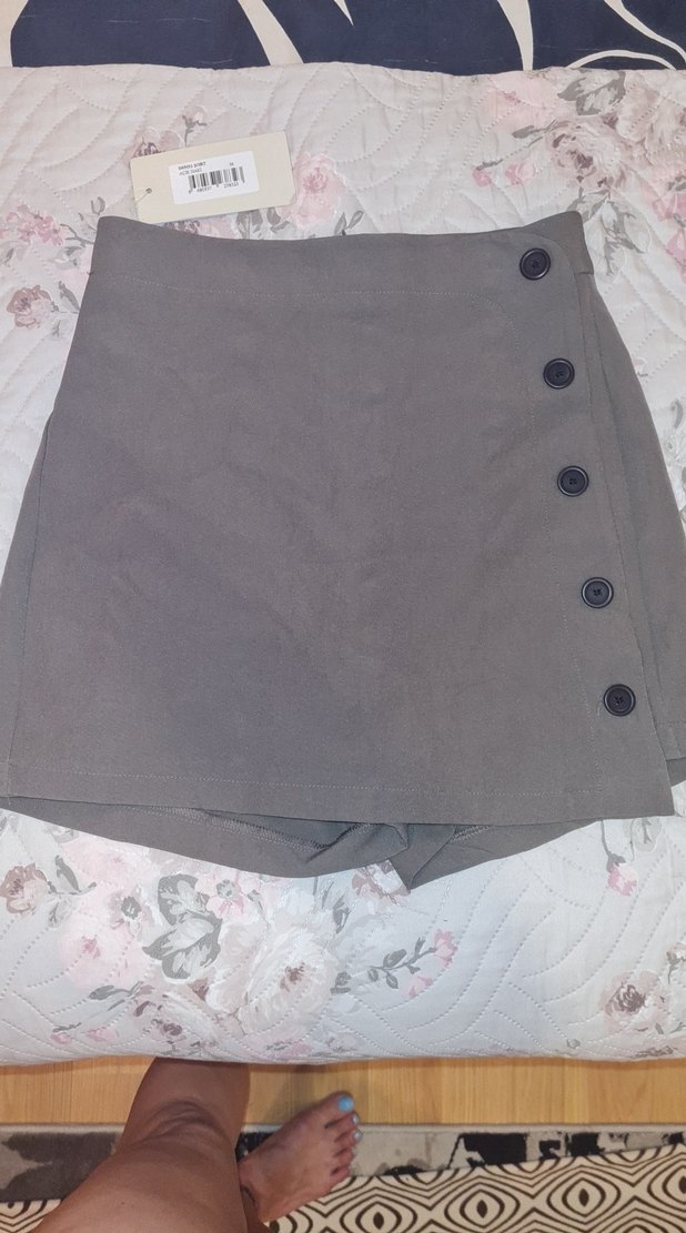 Düğmeli, haki kadın mini sort etek.rahat ve sokak stili için uygun. s beden