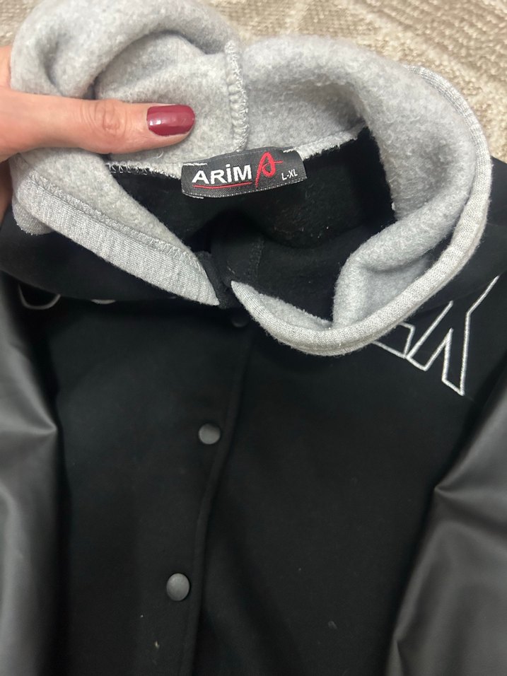 Düğmeli, uzun kollu ve bisiklet yaka gri ceket, yumuşak ve sıcak kumaştan üretilmiştir. Baskılı deseniyle sportif ve gündelik şıklık sunar. Üzerinde "ARiM" etiketi bulunur.