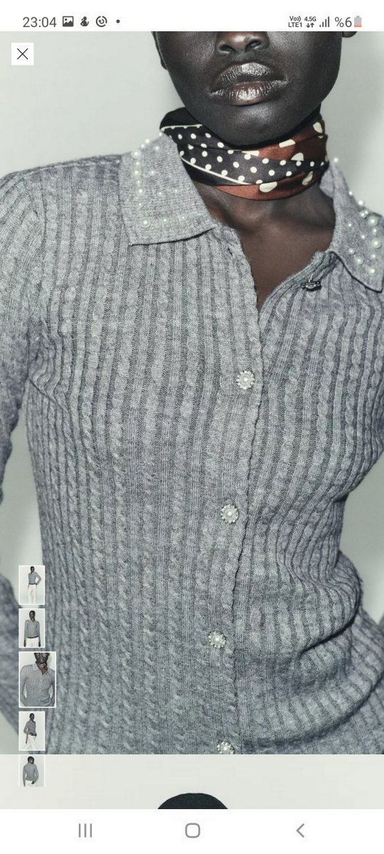 Düğmeli ve yakalı uzun kollu, yumuşak triko kumaştan yapılmış, gri renkli, dar kesim kadın hırkası. Rahat ve günlük kullanıma uygun. #zara