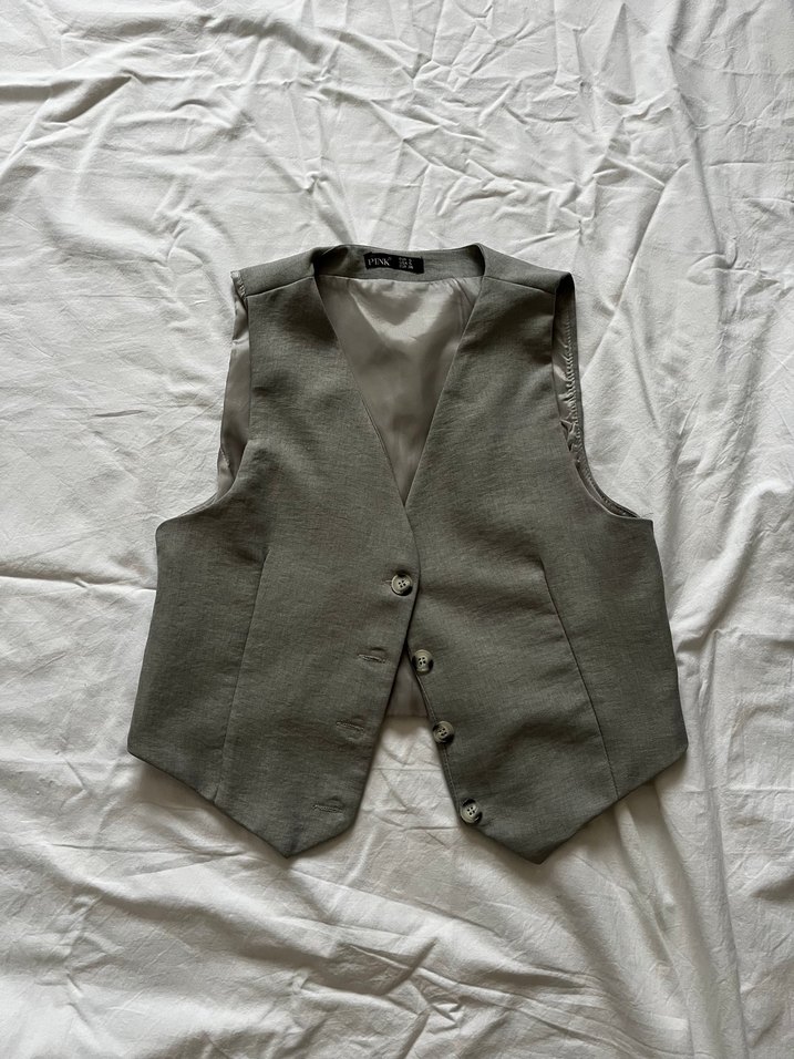 Düğmeli Gri Kadın Yelek
