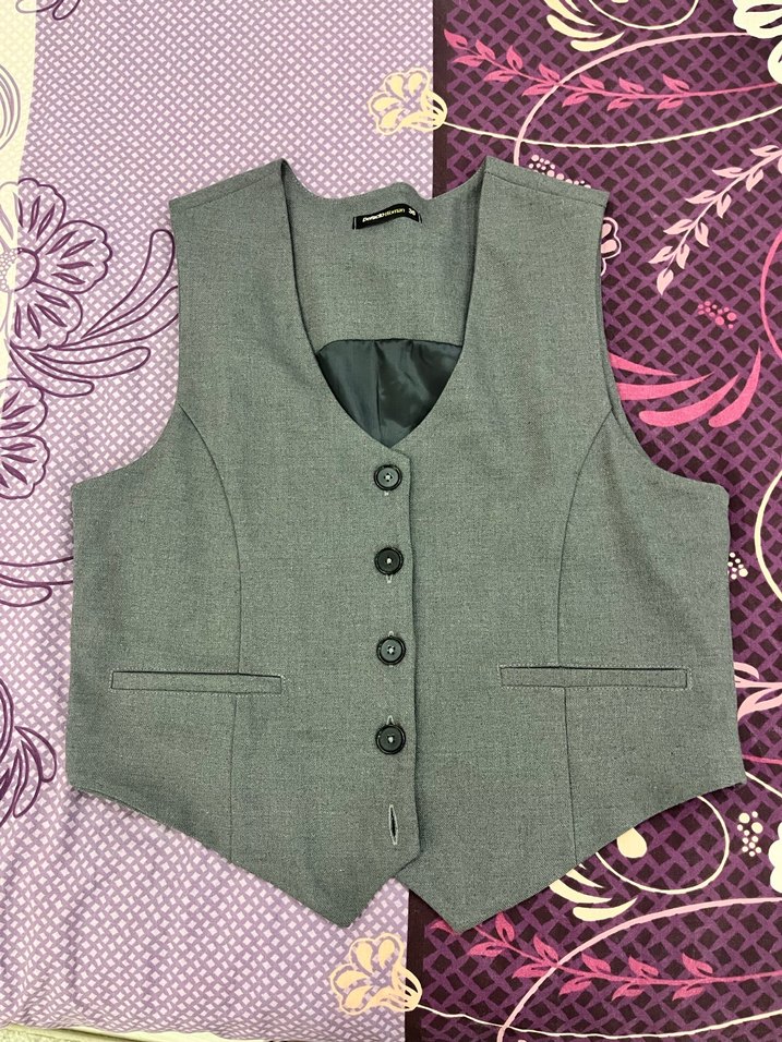 Düğmeli Gri Kadın Yelek
