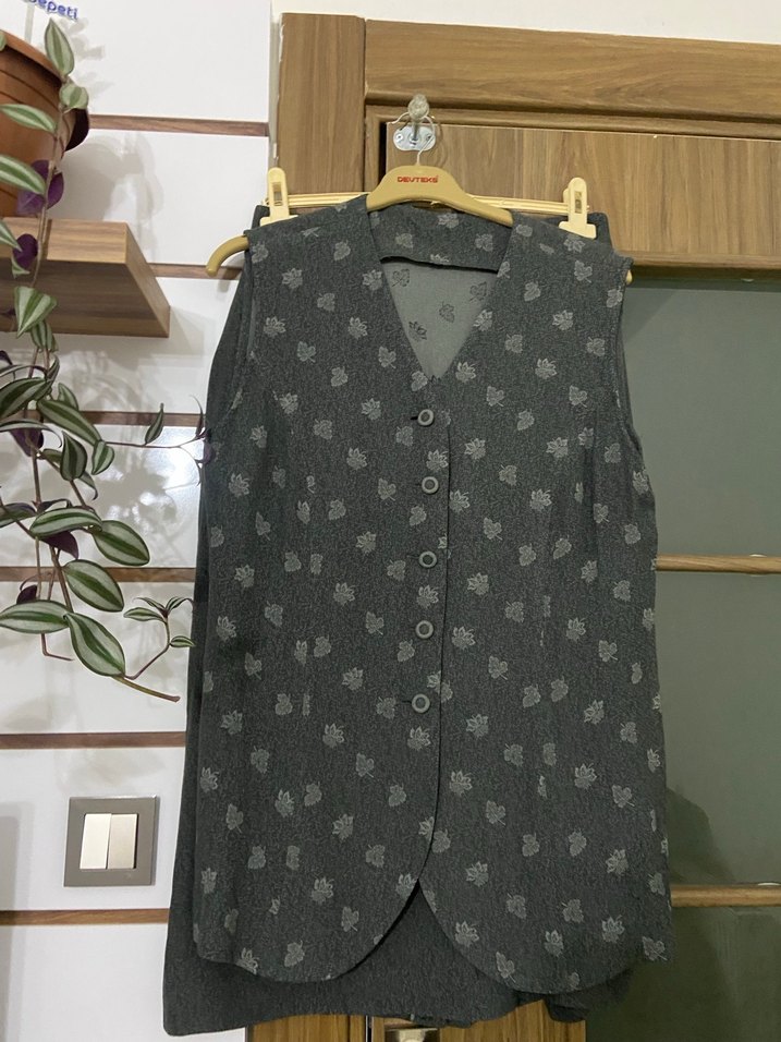 Düğmeli Gri Kadın Yelek Etek Tesettür Takım