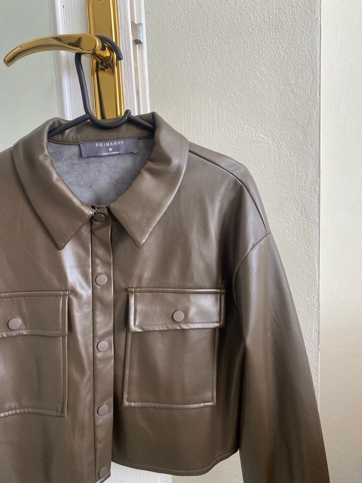 Düğmeli Gri Kahverengi Deri Kadın Ceket