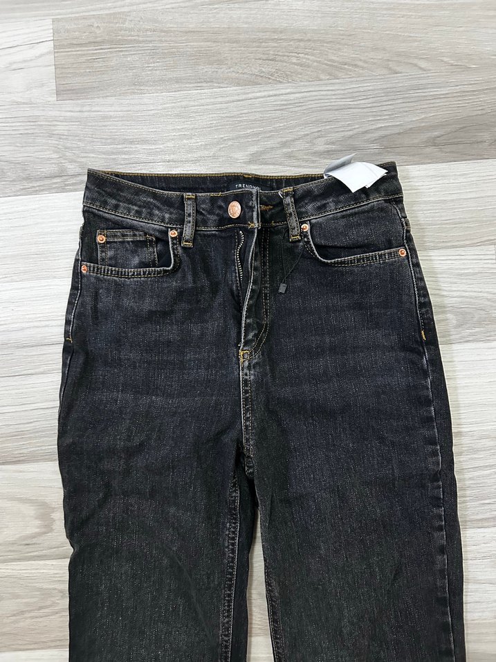 Düğmeli Gri-Kahverengi Normal Boy Kadın Kot Pantolon