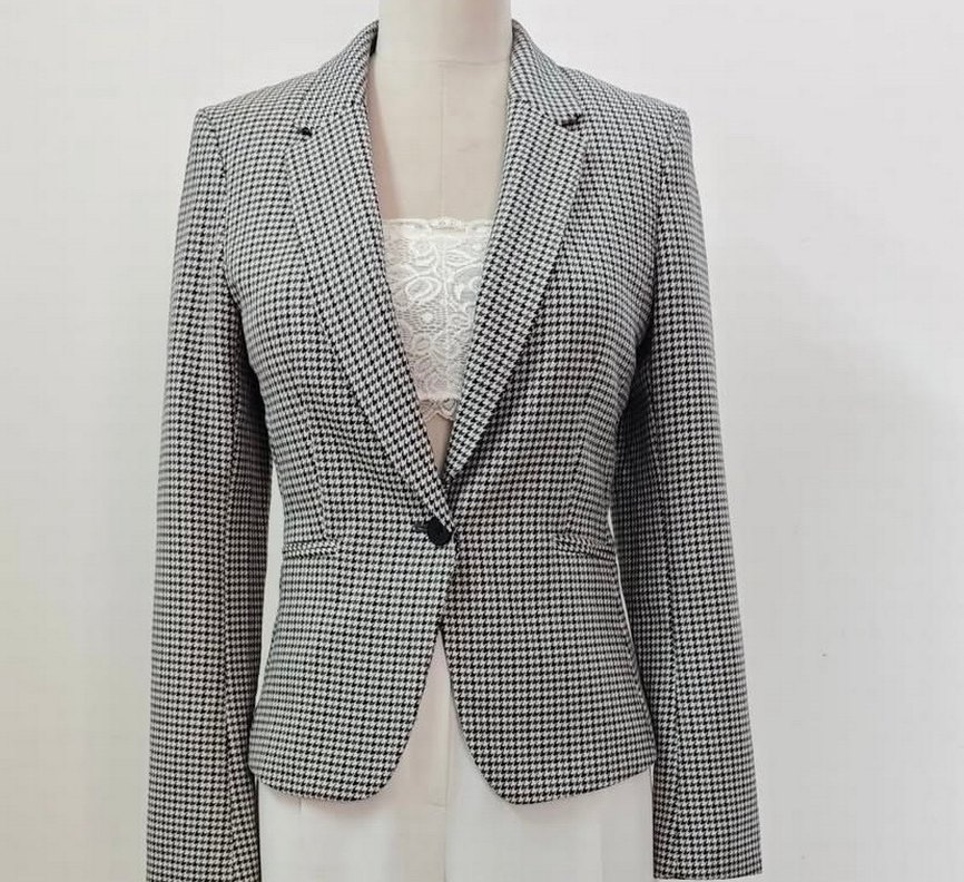 Düğmeli Gri Kareli Kadın Blazer Ceket