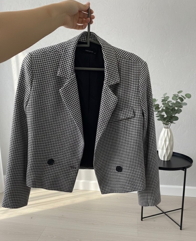 Düğmeli önü, kruvaze yaka ve uzun kollu gri kareli kadın blazer ceket. Normal kesim, midi boy ve sentetik kumaştan üretilmiştir. Ofis ve günlük şıklık için uygundur. Çok temiz, az kullanıldı. Leke, sökük veya tüylenme yoktur
