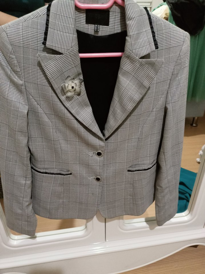 Düğmeli, gri kareli kadın ceket, normal uzunlukta ve regular fit kesime sahiptir. Uzun kollu, notched lapel yakalı, ofis için uygundur. Sentetik kumaştan üretilmiştir. etegide var dilerseniz onu hediye ederim defosuz