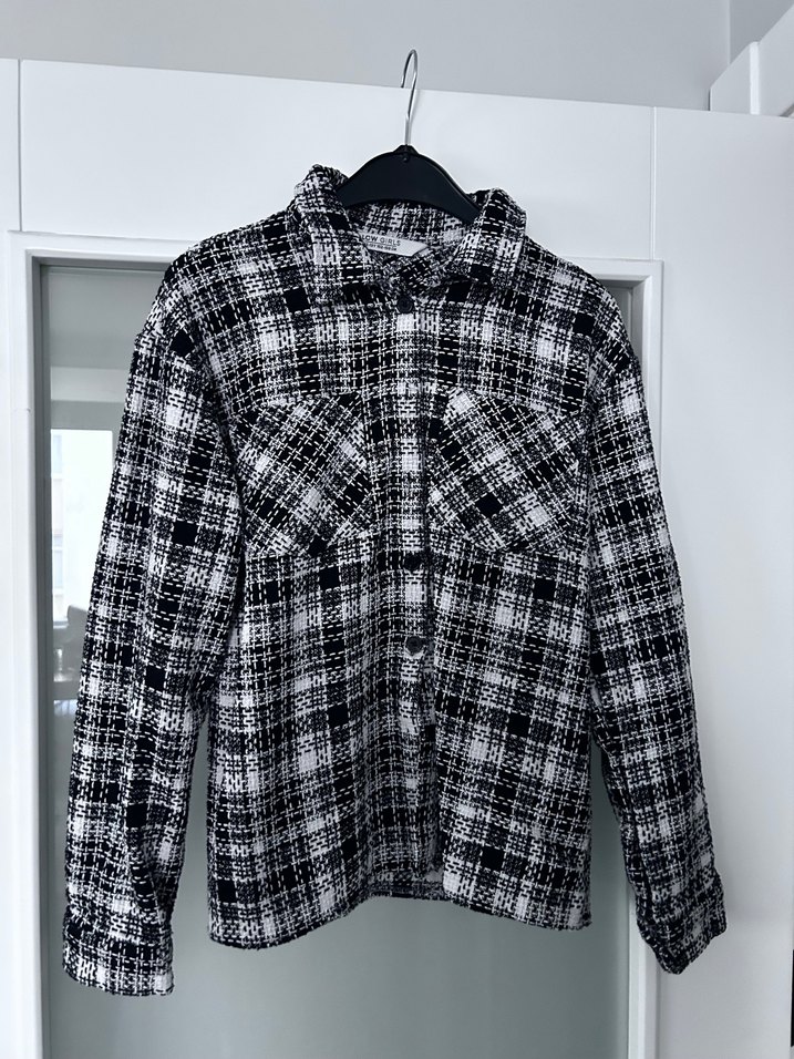 Düğmeli, uzun kollu, notlu yakalı gri kareli kadın gömleği, sentetik kumaştan, rahat kesim ve sokak stili için uygundur.