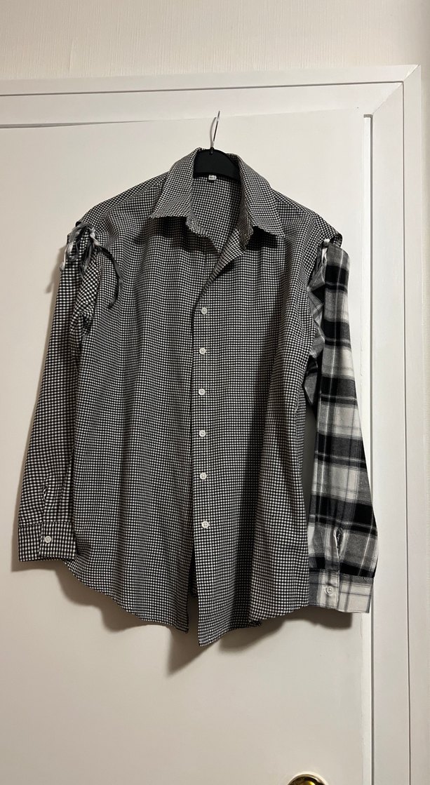 Düğmeli ön kısmı, uzun kollu ve farklı kareli desenlerin birleşimiyle tasarlanmış kadın gömleği. Keten kumaştan, bol kesim ve notlu yaka ile rahat bir sokak stili sunar. Gri ve siyah tonları günlük kullanıma uygundur.