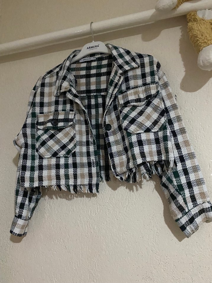 Düğmeli Gri Kareli Kısa Kadın Gömlek