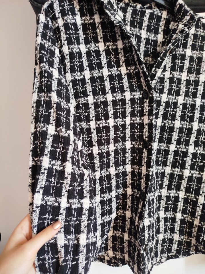 Düğmeli, gri kareli midi uzunluğunda kadın kaban. Notlu yaka ve uzun kolludur, günlük sokak tarzına uygundur.