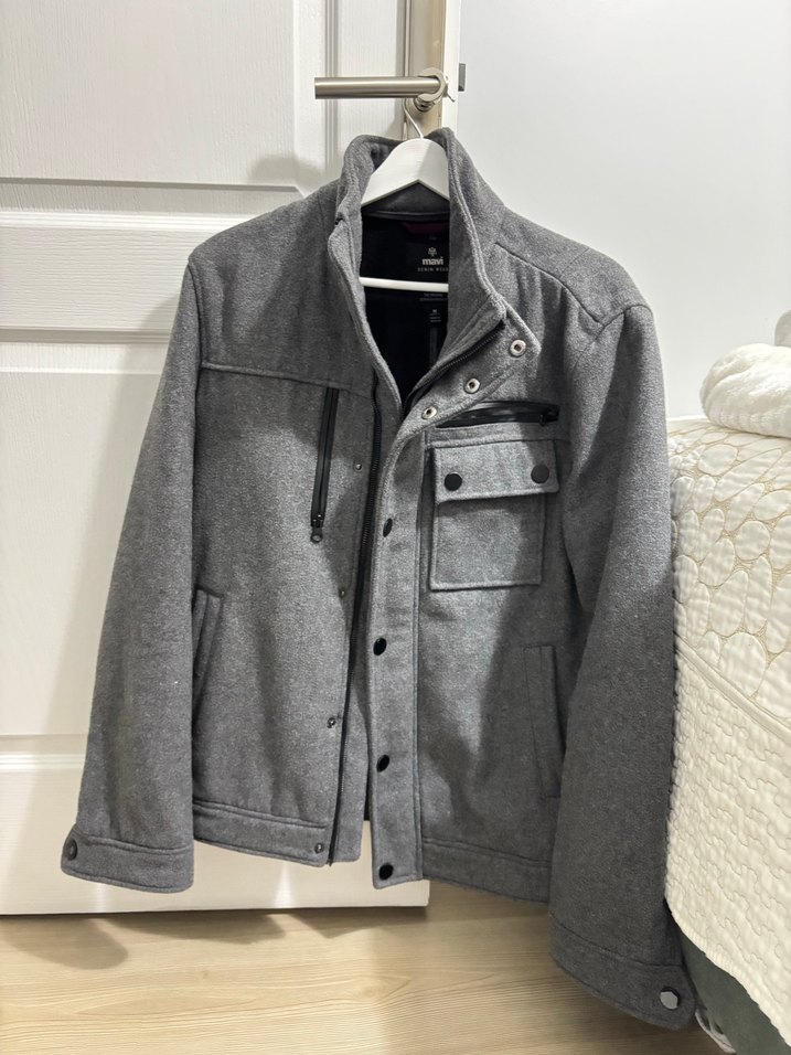Düğmeli ön cep detaylı, gri erkek midi boy ceket. Uzun kollu, normal kesim ve yumuşak, sıcak kumaştan üretilmiştir. Sokak stiline uygun, desensiz tasarım.